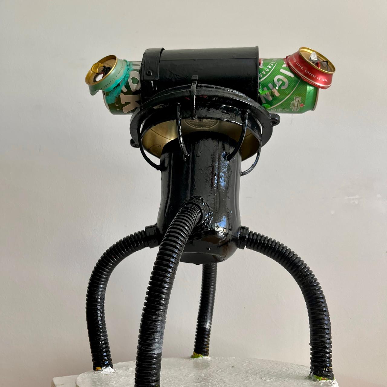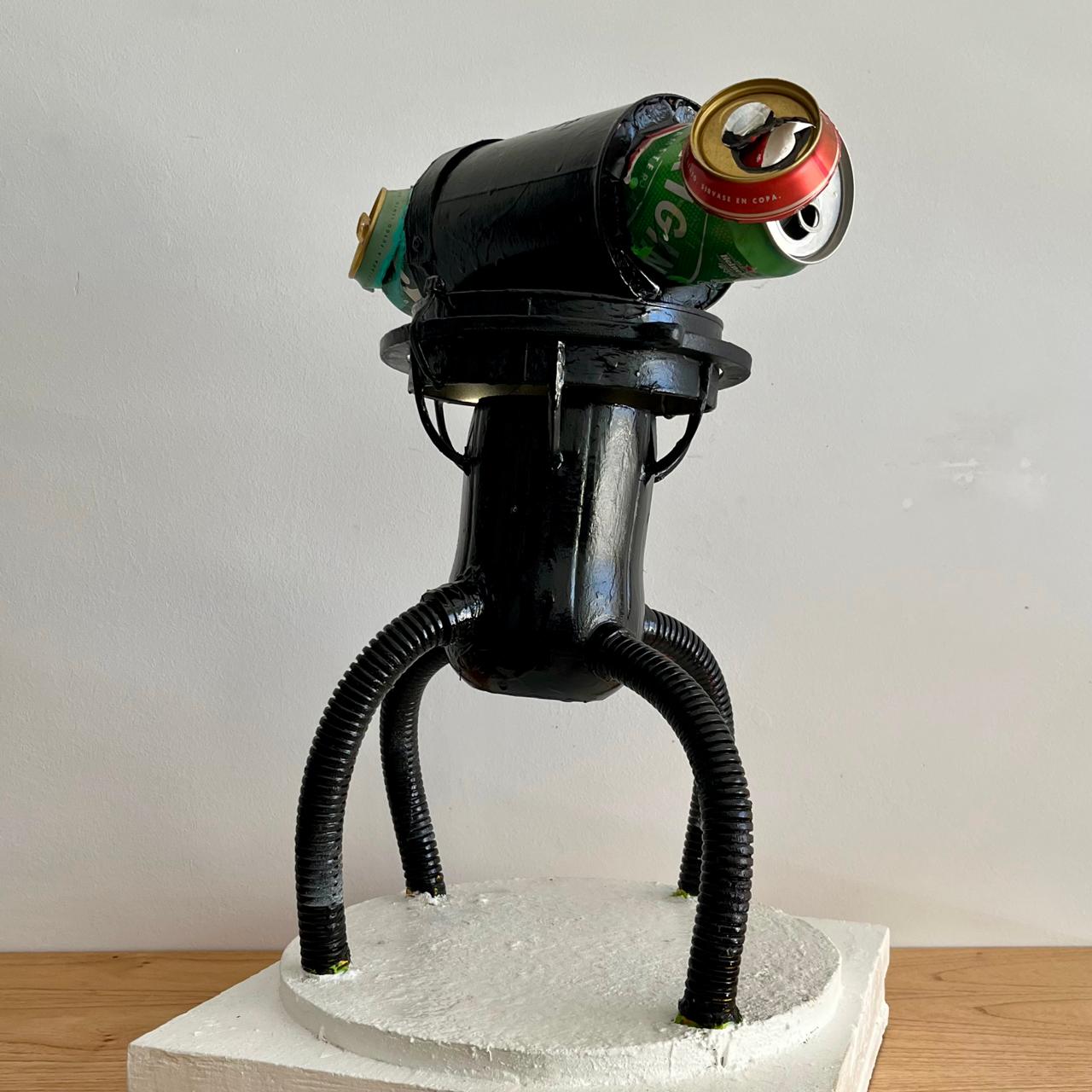 Materiales: Reciclados de latas, envases, mangueras, imperdibles y un viejo poste de luz.